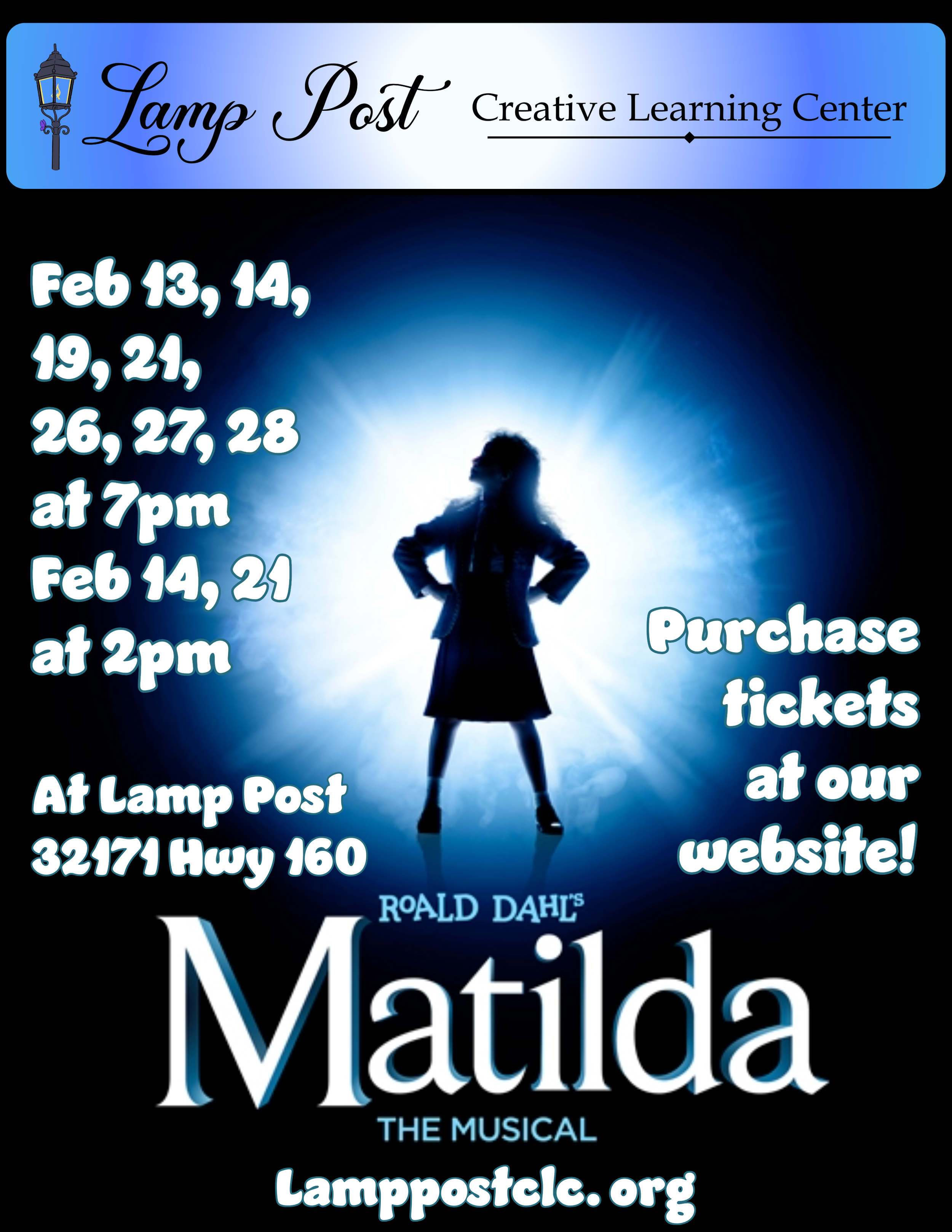 It’s Showtime at Lamp Post!Tickets are available from our Lamp Post Booktix site:$10 for adults $6 for students and seniorsKids five and under are freeTickets will also be available at the door, but seating is limited. Purchase Tickets!